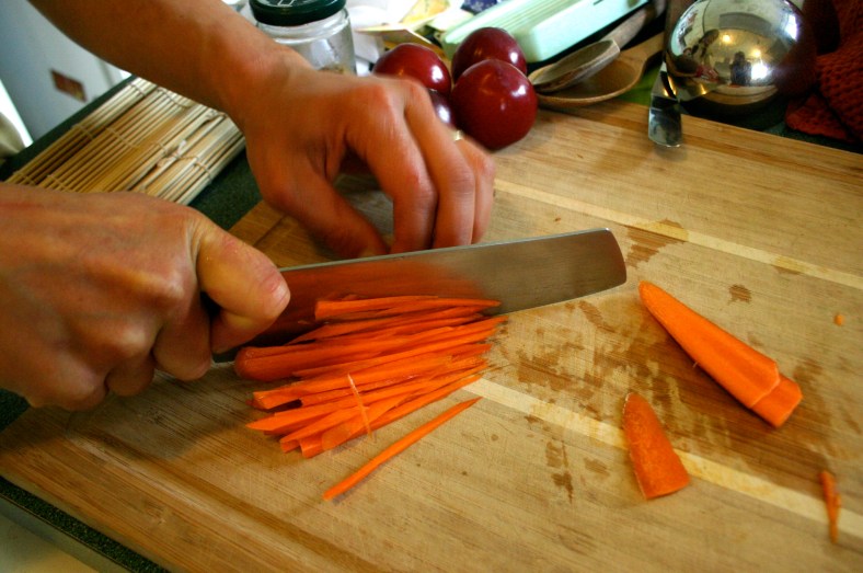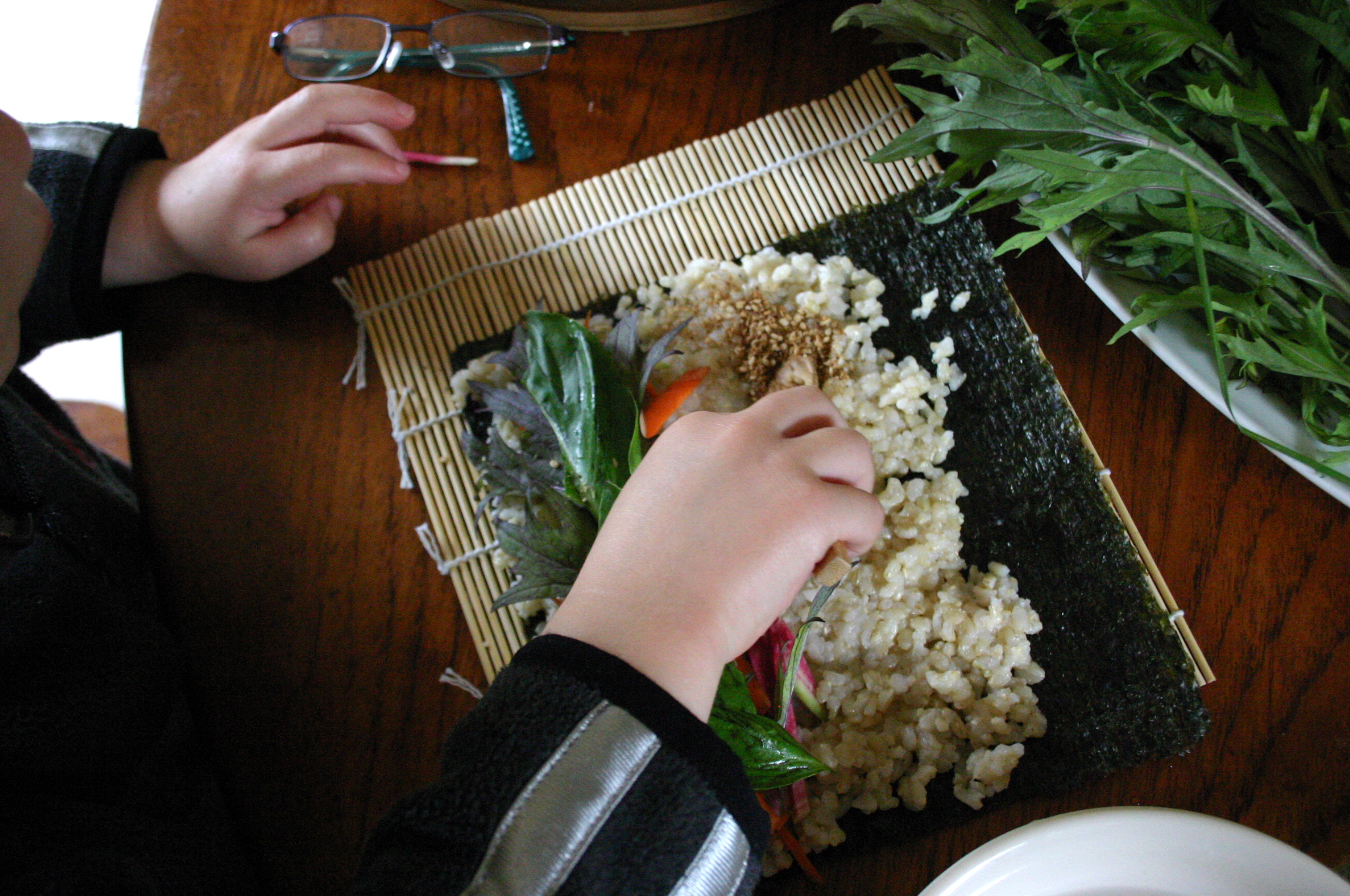 When we arrived, a cloth was already draped over a round wooden bowl filled with sushi rice. Though rice and nori aren’t local (the nori sheets we used were produced in Japan, the rice by a sustainable company out of California), together they form a perfect vehicle for enjoying whatever beautiful thing is waiting to be eaten.