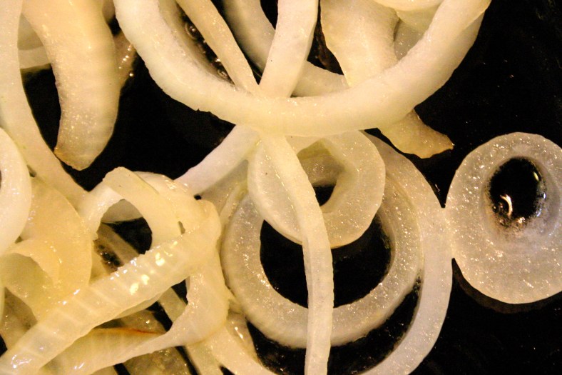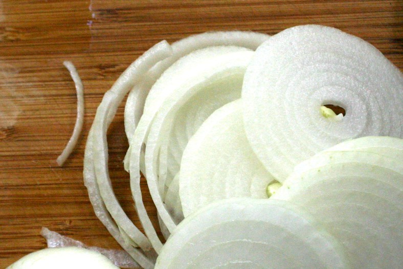 Onions, sliced into ¼ – 1/3-inch slices;