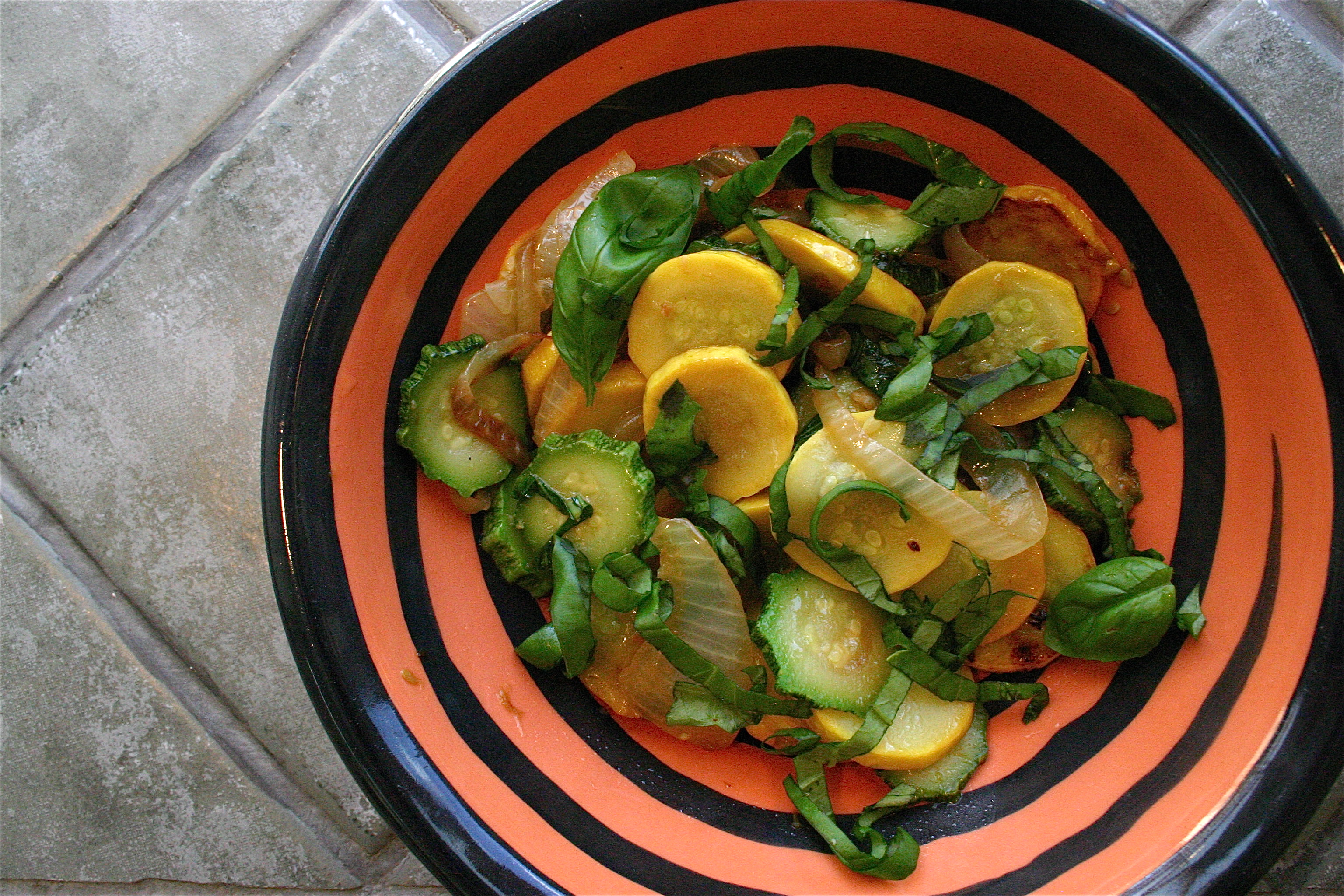 My friend Heidi is all about simple, good food. This dish is inspired by how she prepared freshly picked zucchini and crookneck squash one day.
