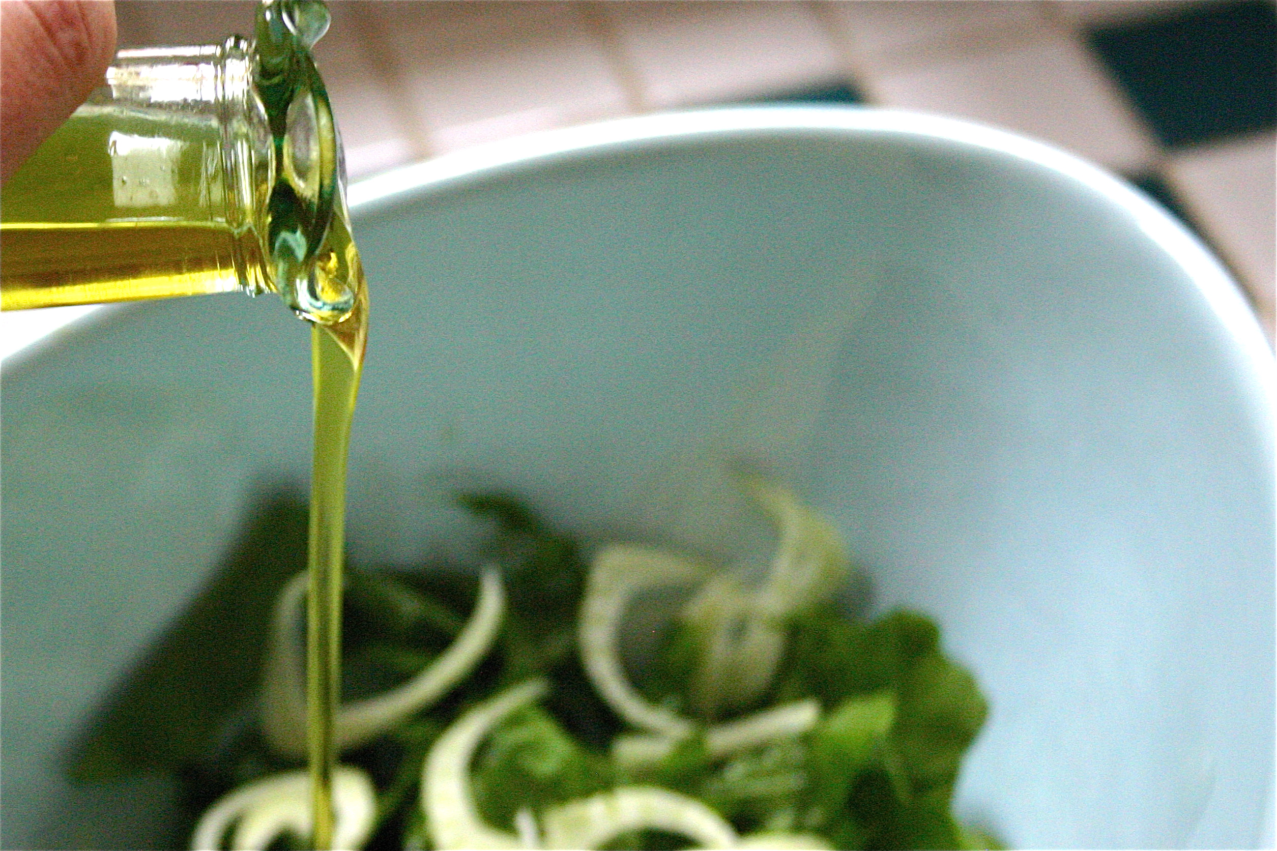 Toss the arugula and fennel in a medium bowl with the lemon juice, extra virgin olive oil, salt and pepper.