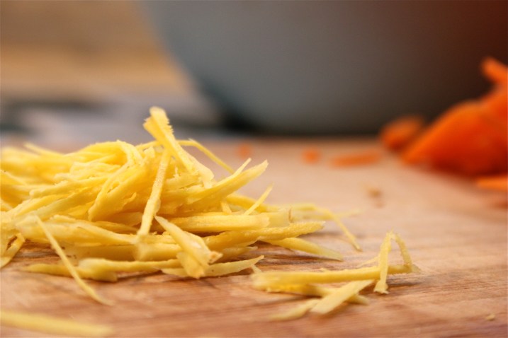 1 small nub ginger, cut thin into golden threads