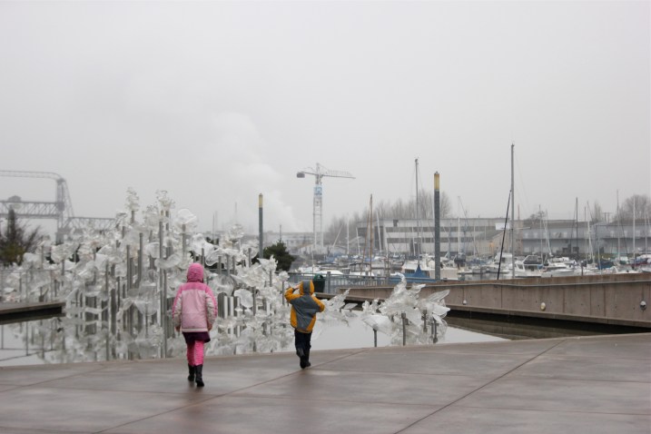 Monday was one of these lazy, lovely mornings and afterward we took the kids to the Museum of Glass where we saw these exhibits. My favorite was a glass forest in the Glimmering Gone exhibition: layers of clear glass forming the likenesses of underbrush and trees with a mirrored river cutting through. Sublime! I would have stood there all morning if I’d been alone.