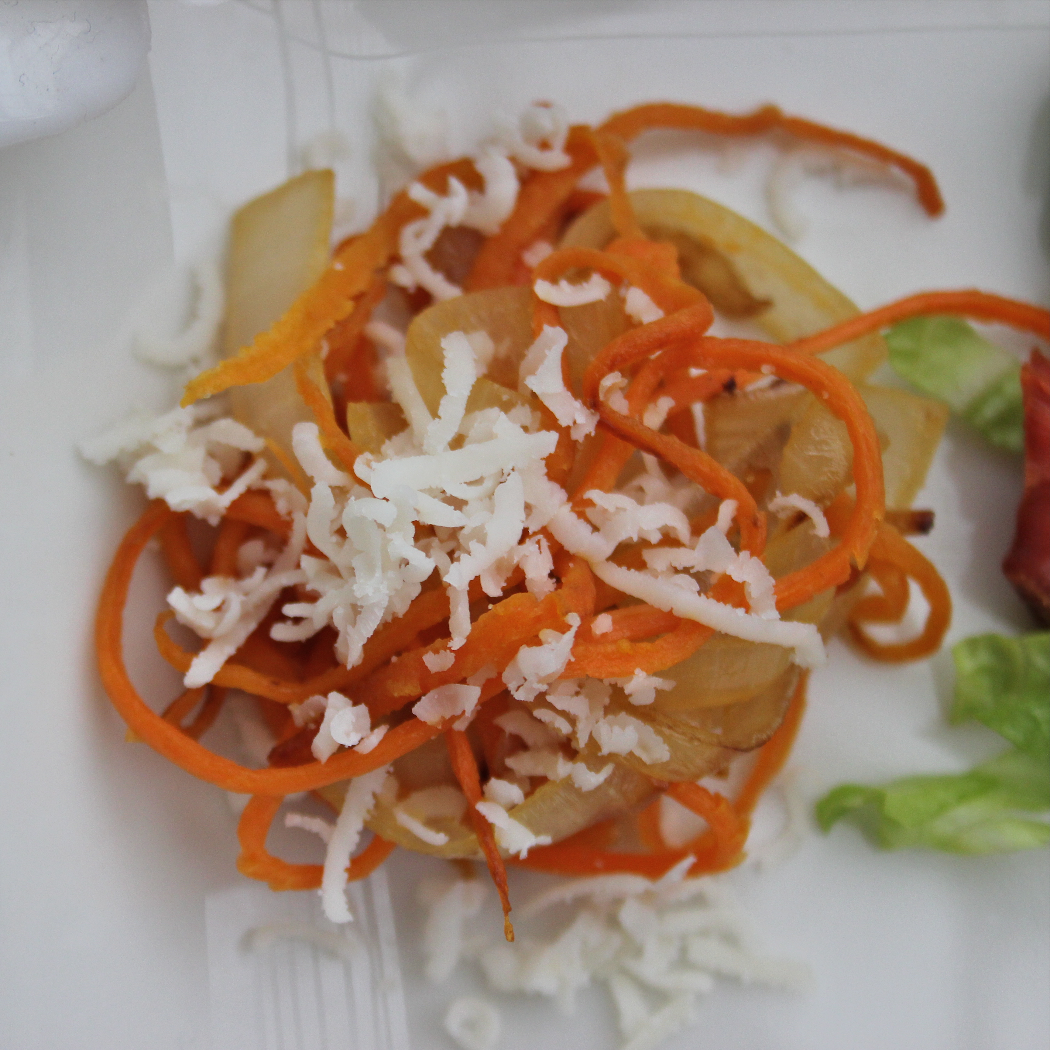 Carmelized onions and carrots with white cheddar. Sauté long carrot and onion strips until lightly carmelized. Sprinkle with finely shredded cheddar.