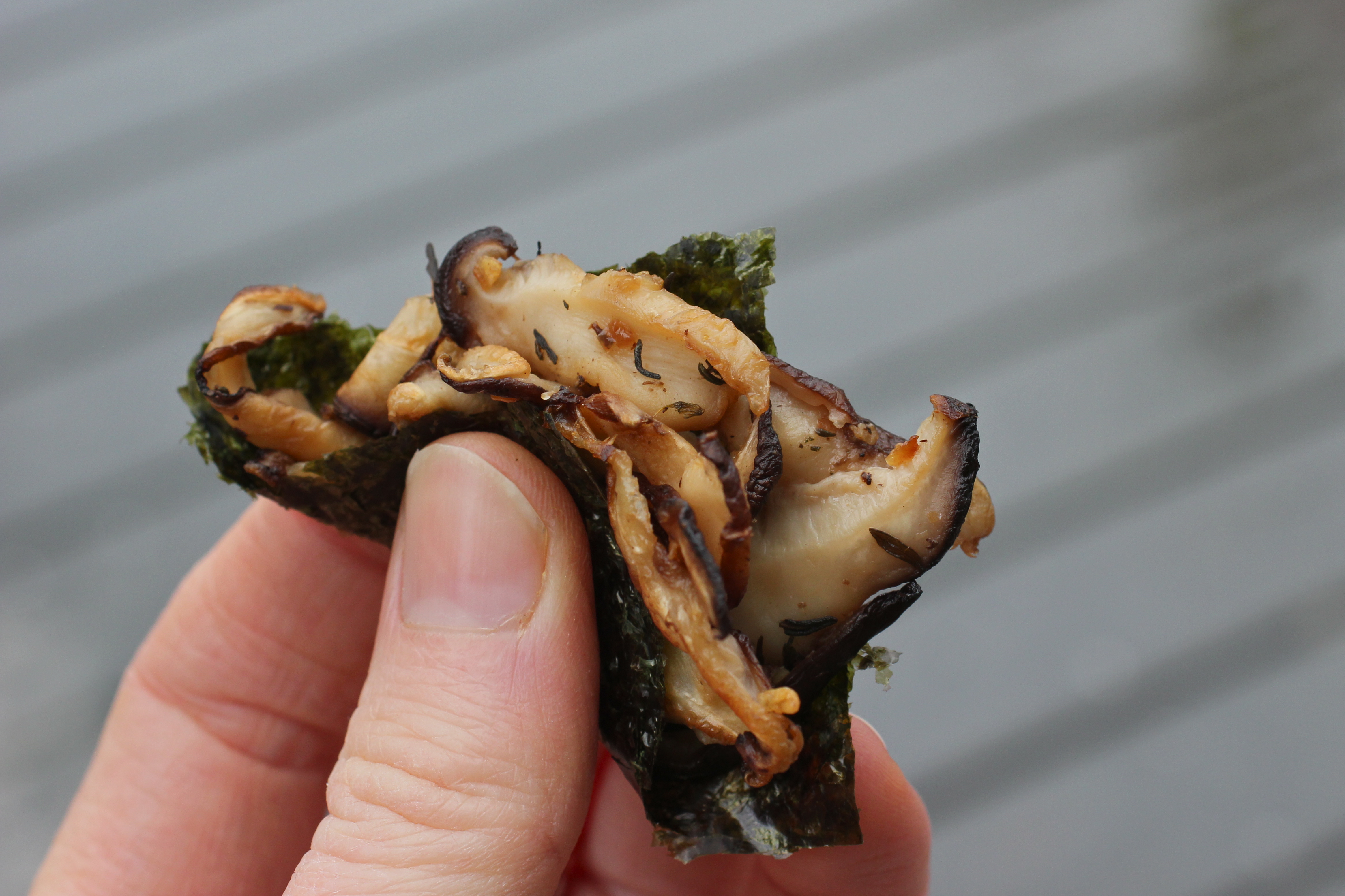 with a square of nori and pop it in your mouth.