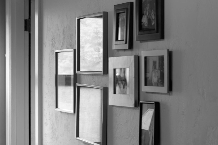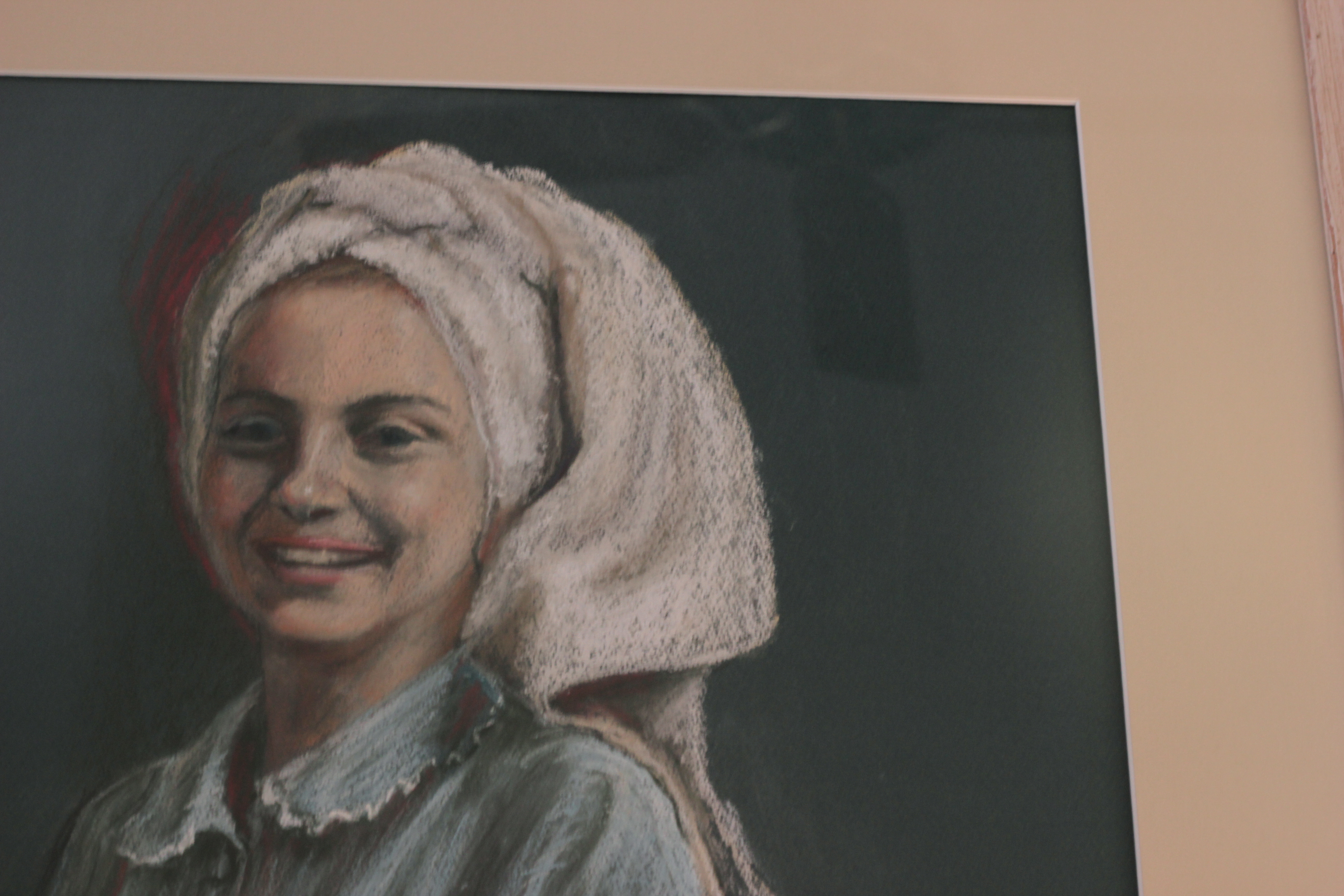 I write beneath a portrait of my mother, painted by my grandmother when my mom was about thirteen years old. On the wall to my right we have a small collection of family photos: our own nuclear family when my daughter was a preschooler and my son in the womb, a formal studio shot of my paternal grandparents, a family portrait with my dad and brothers when I was twelve, an informal shot of my mom and brother with their arms around each other.