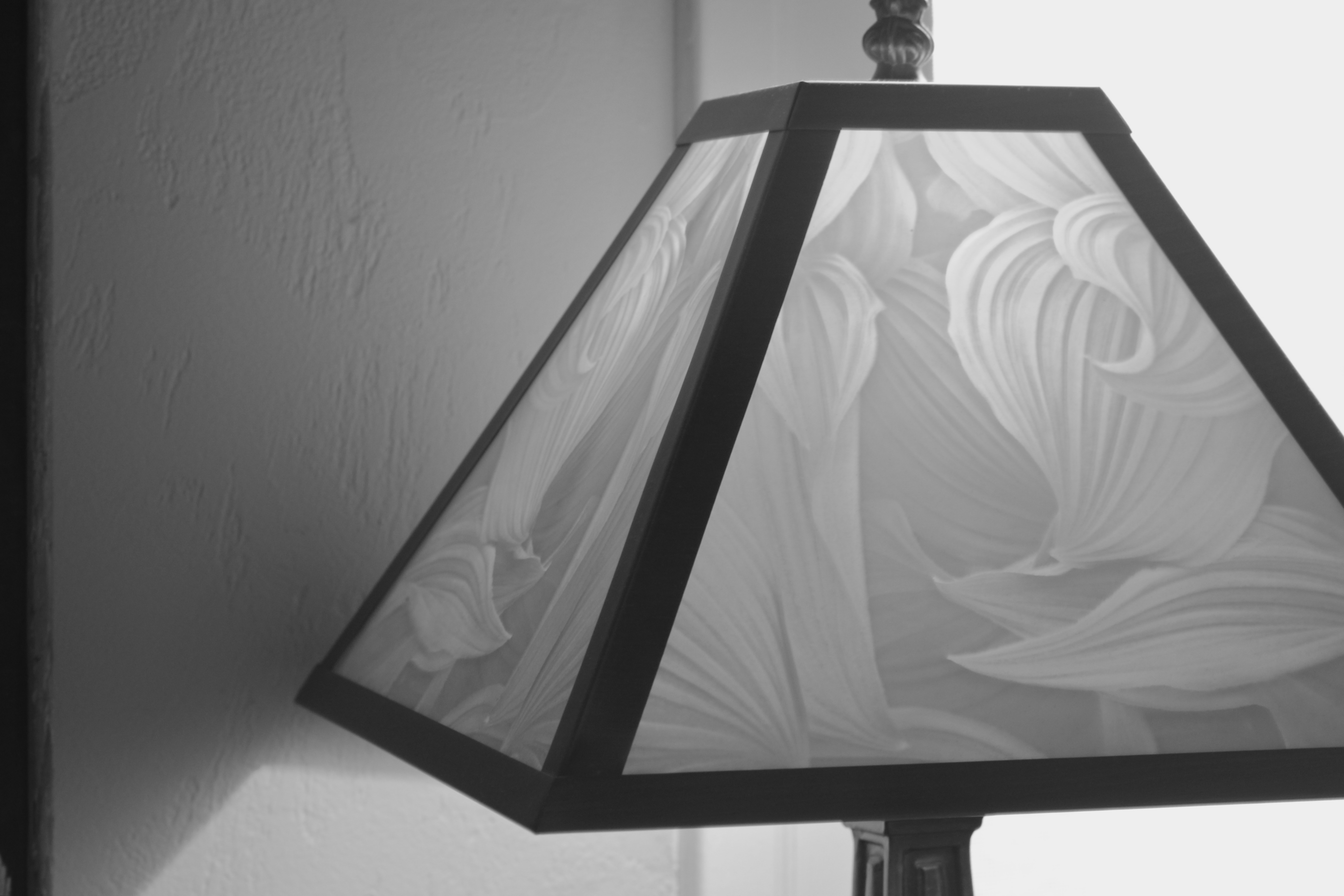 I happened to be taking a break from photo editing while my kids were at school when I watched this and I thought about taking her advice in the form of a walk around the block with my camera, to capture images of whatever I found. But that felt forced so I started shooting my work space instead, a dusty desk covered with snacks, books, notes, my laptop and the prettiest lamp in the house.