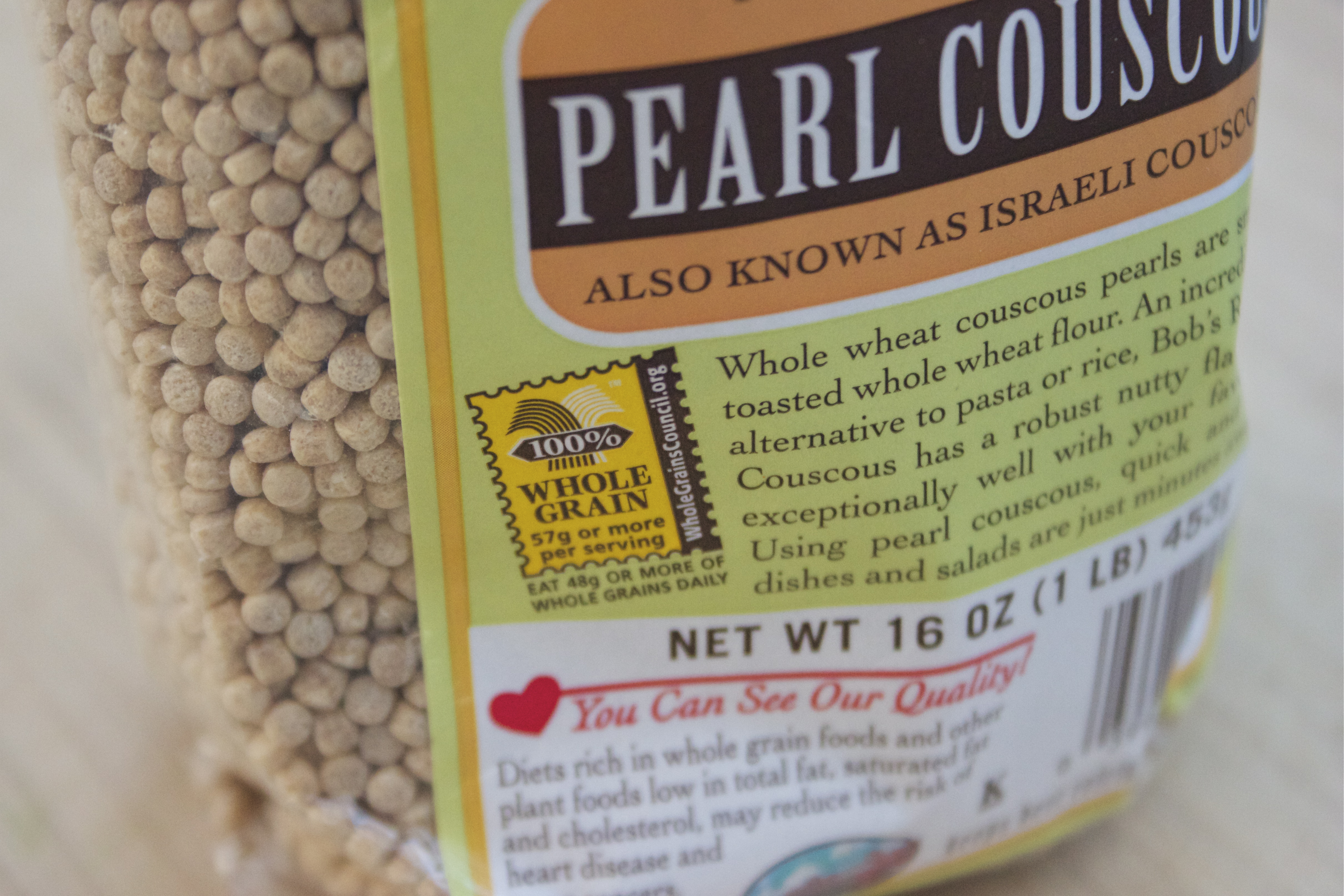 For the pearl couscous: sauté two garlic cloves in olive oil for about 30 seconds and add ¼ teaspoon each of paprika and cumin. Stir for one minute, add 1¼ cups of water, 1/2 teaspoon of salt and 1 cup of pearl couscous. Stir, bring back to a boil and reduce heat. Cover and simmer for 20 minutes.