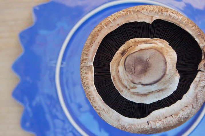 When I saw the parsley, a gorgeous bunch from Kirsop Farm, this scene is what came to mind. I’d never heard of chimichurri sauce, never seen it mentioned in the vegetarian cookbooks on my shelves. But if she could enjoy it on a piece of meat, why couldn’t I give it a try on the standard vegetarian option on burger menus everywhere? Portobellos are substantial, they respond to a steak knife the way some steaks do – a little give, a little juice spilling onto the plate. Why not?