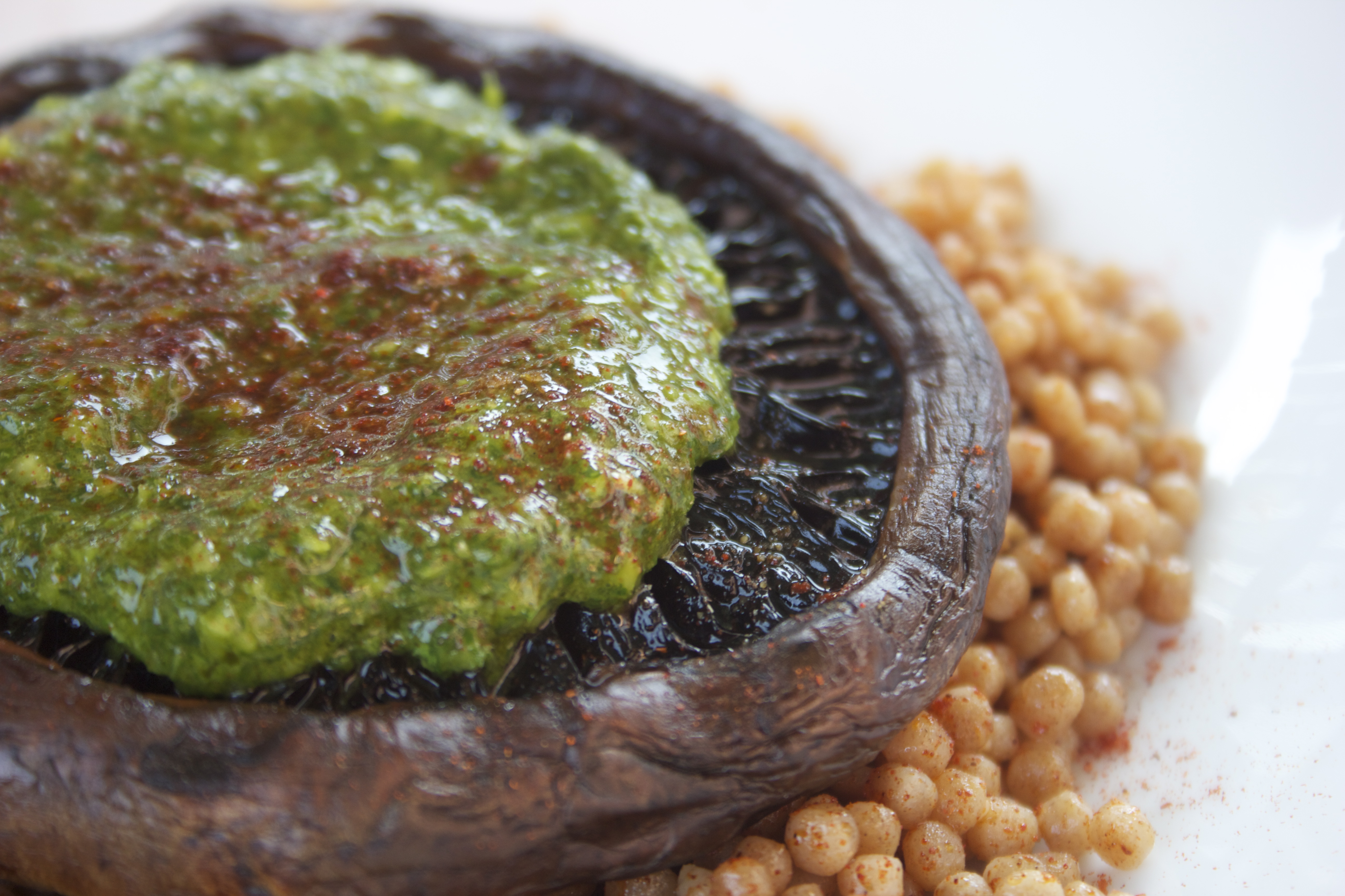 Place grilled portobello over a bed of couscous. Spread generously with chimichurri sauce and sprinkle with extra cumin and paprika.