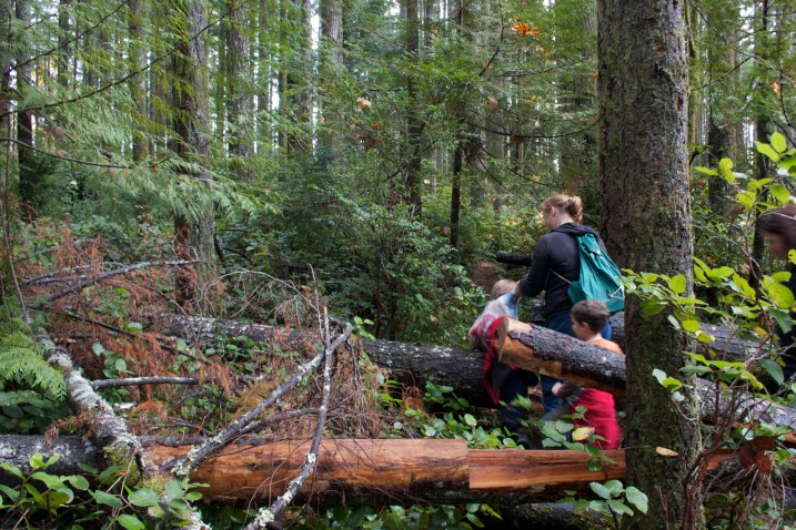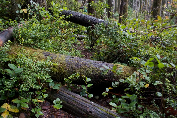 I’d brought along a basket and a bag to forage with my friends, Anne and Chris. I wore my heavy coat. My Bogs kept my feet dry but weren’t the best for gripping slick logs that were lying across the path. I wrangled my camera as we climbed, ducked and scrambled through the brush.