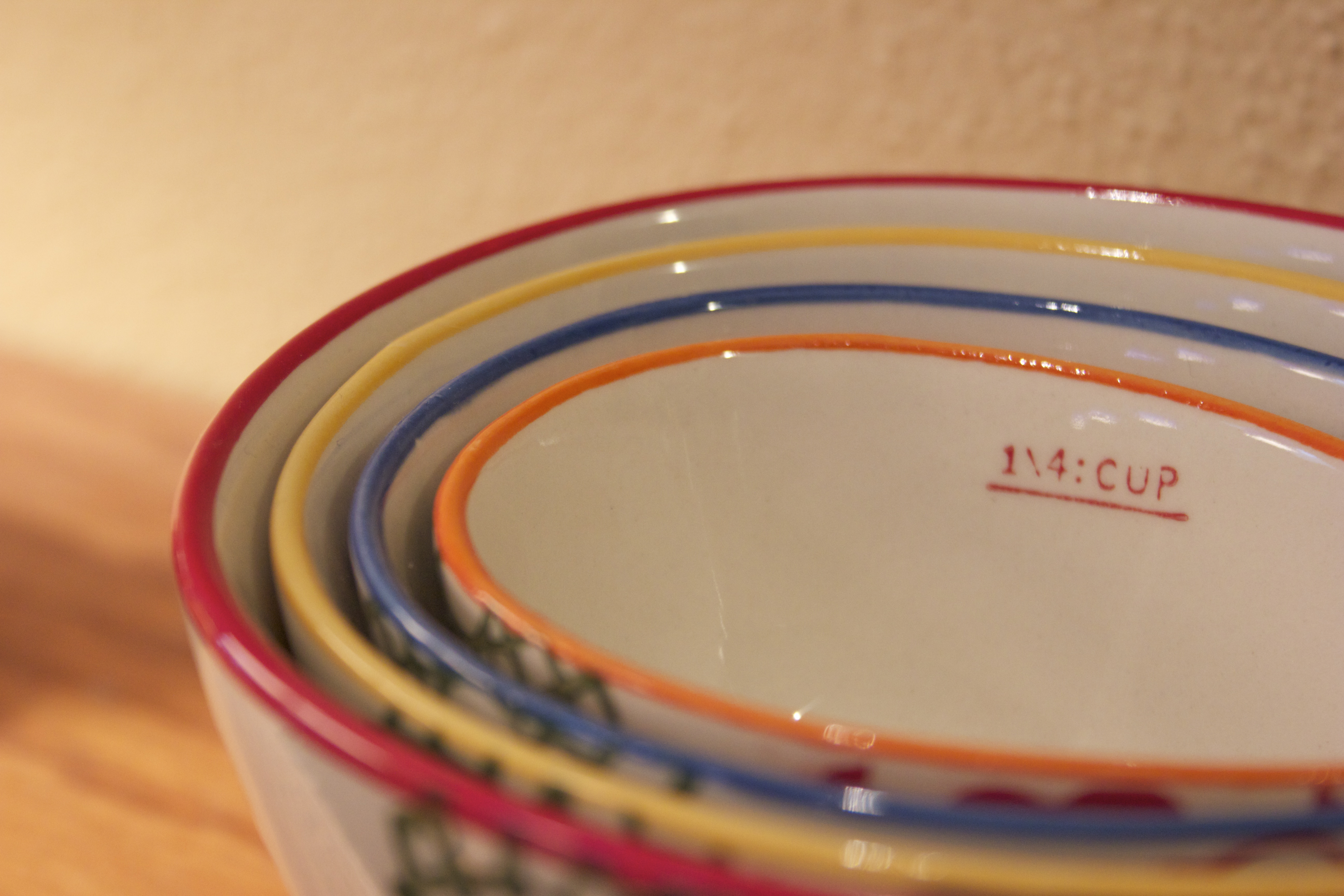 Well, I may not be making vinegar in my very own kitchen this week, but I am grateful for the quietness, the return to routine. It’s the season to be inside, using things like the pretty measuring cups from my brother and his fiancée and the salt mill my husband splurged on several years back. And I’m enjoying the light.