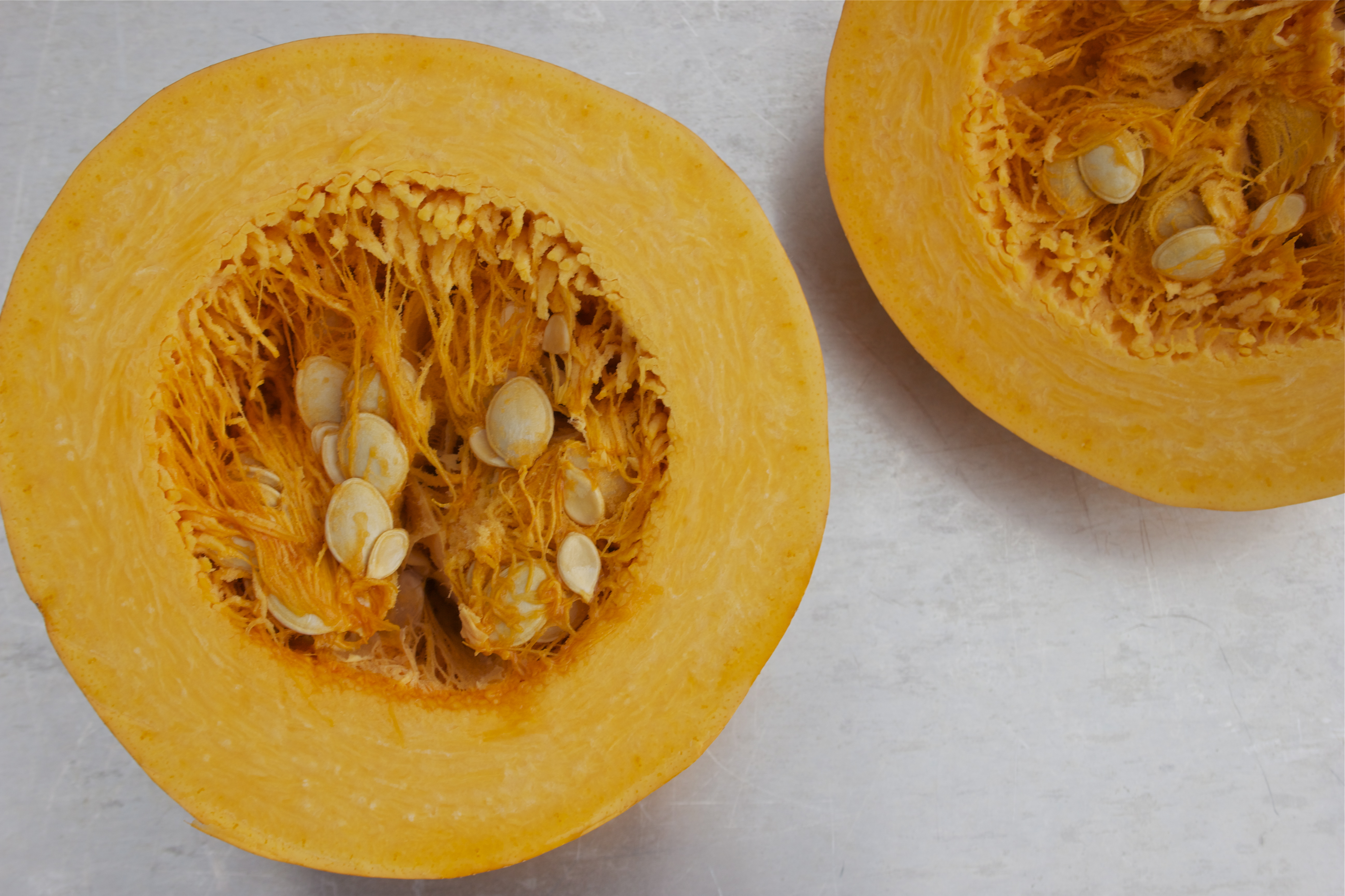 Cut squash in half and scoop the seeds out of one side. Place cut side down on a baking sheet lined with parchment paper and bake for 20 minutes or until a fork goes through the skin and flesh easily.