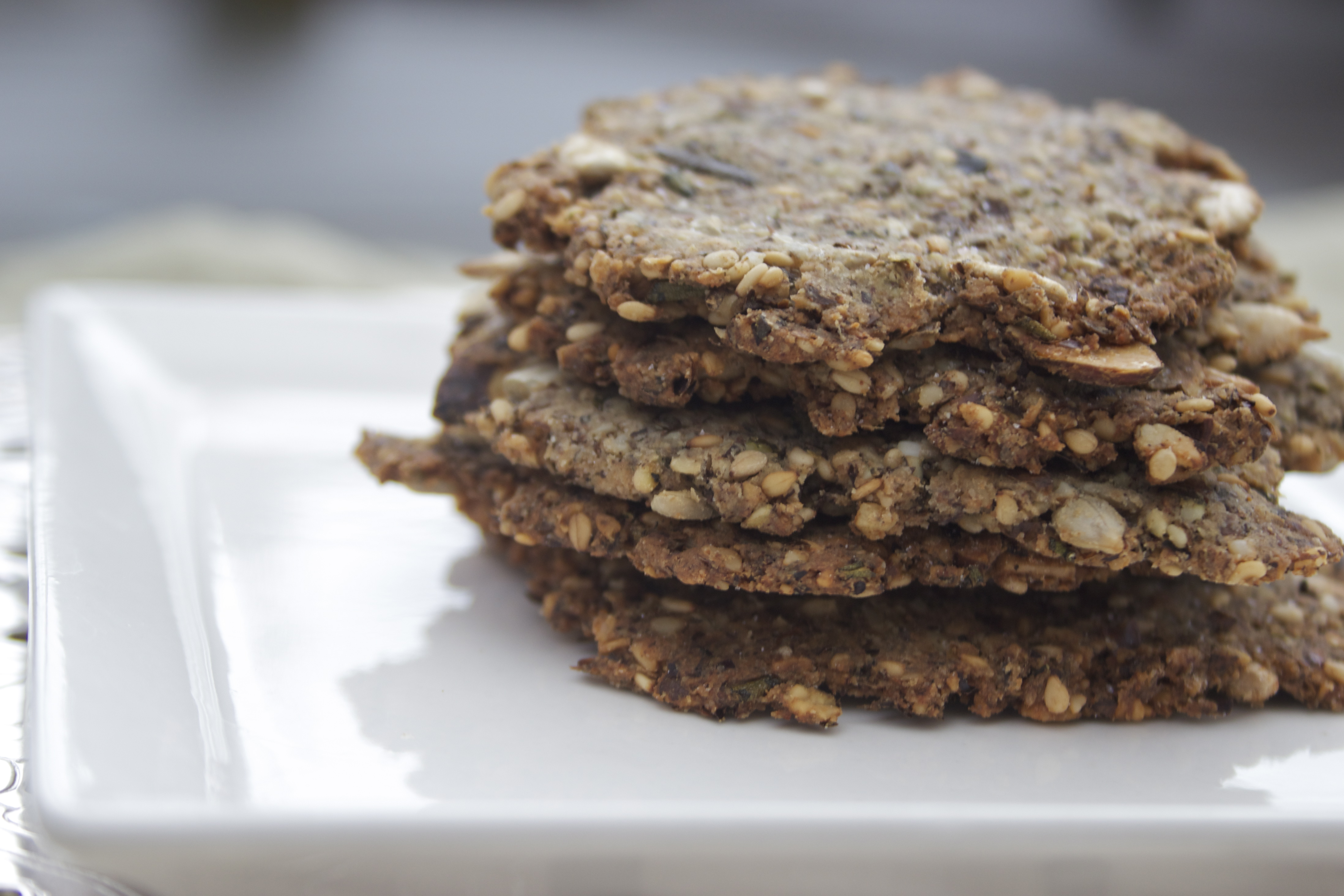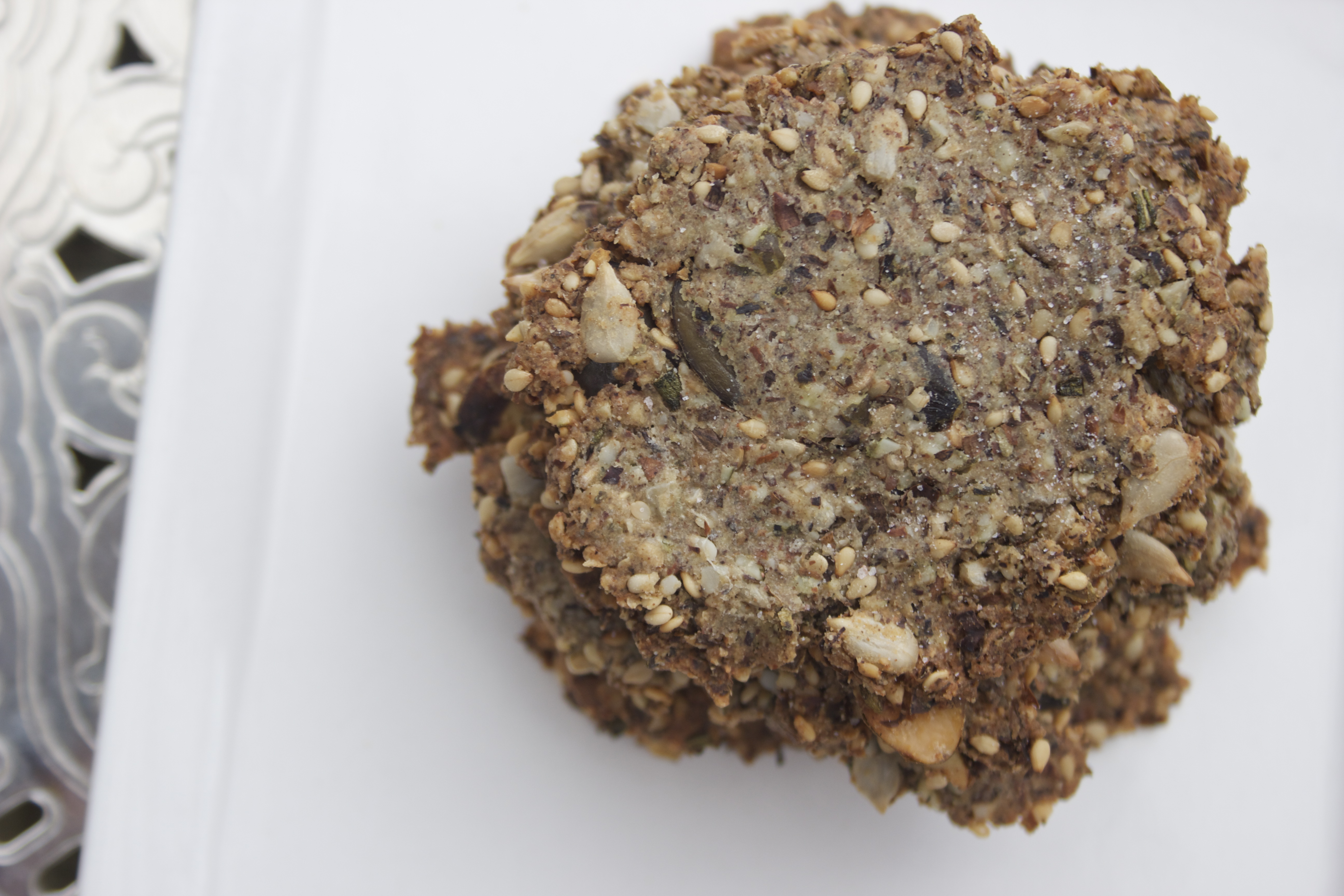 I substituted sesame seeds for flax and used a mixture of buckwheat flour and millet flour in place of the barley. I used only a few grindings of black pepper, omitted the garlic and went light on the rosemary. They’re buttery and perfect with a bunch of almond butter when you need to eat lunch at your desk.