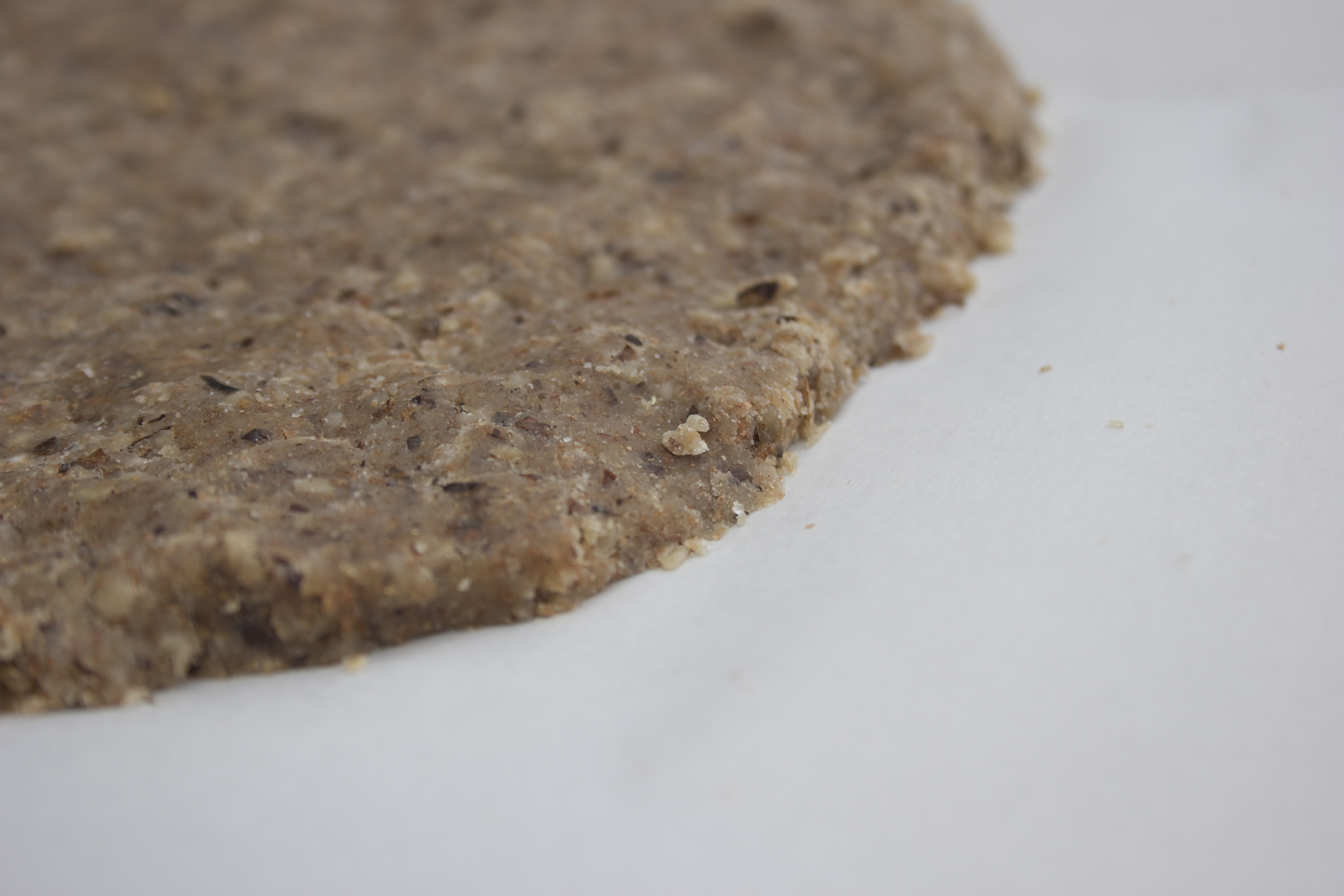 I mixed whole wheat flour with the very end of the all-purpose (I keep vowing that it won’t find its way back in the house, but it always does) and added a quarter of a cup of buckwheat flour to round it out. Then I added an eighth of a cup of sugar, which turned out to be an eighth of a cup too much – the toppings were plenty sweet on their own. I ground up and added the last of the sunflower seeds until they would have been perfect for breading and cut in a stick of butter. Then I beat an egg and mixed it in with a fork. The dough was perfect for pressing into a rough oval on parchment paper, so I did that and painted it with melted butter.
