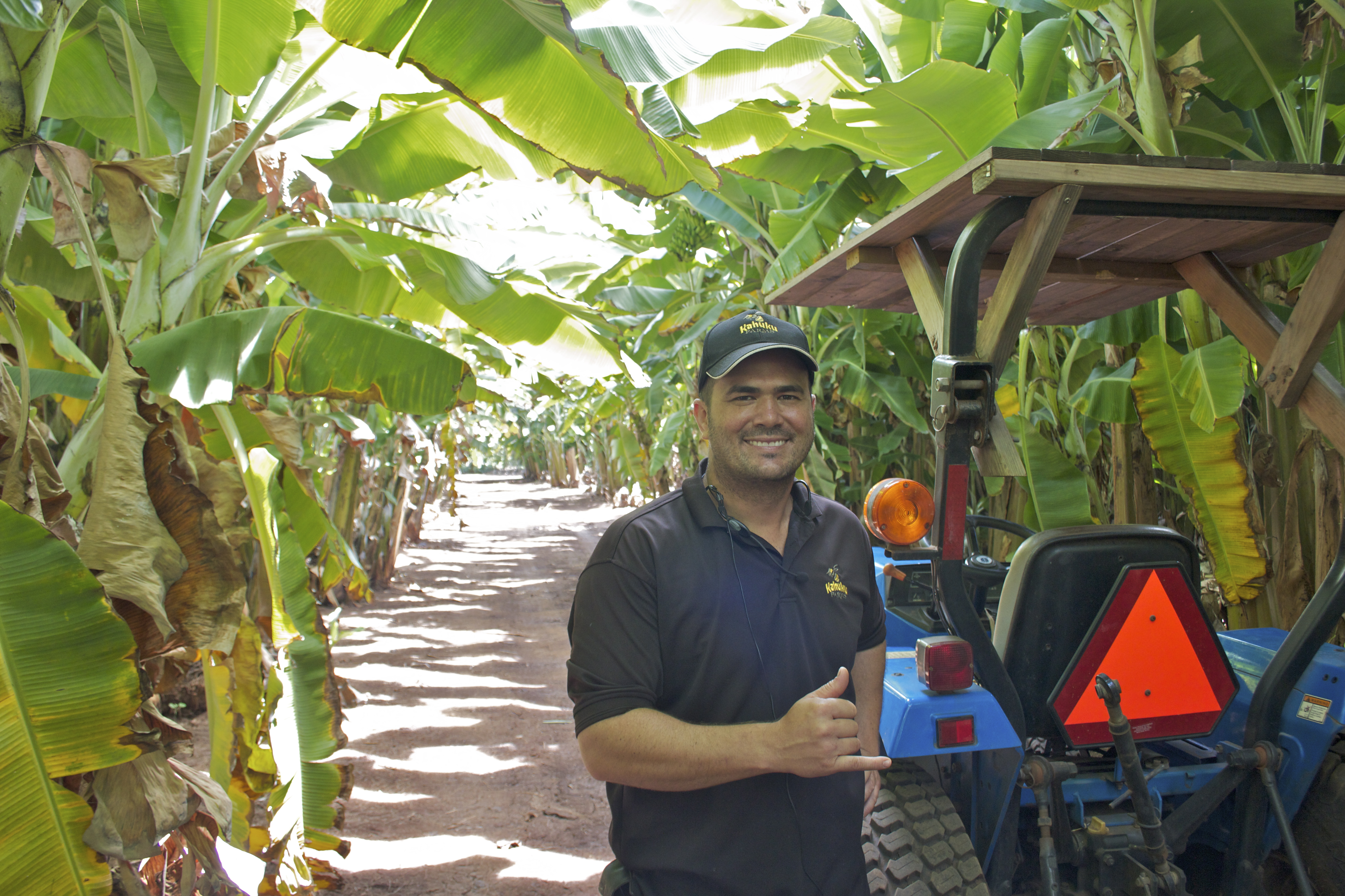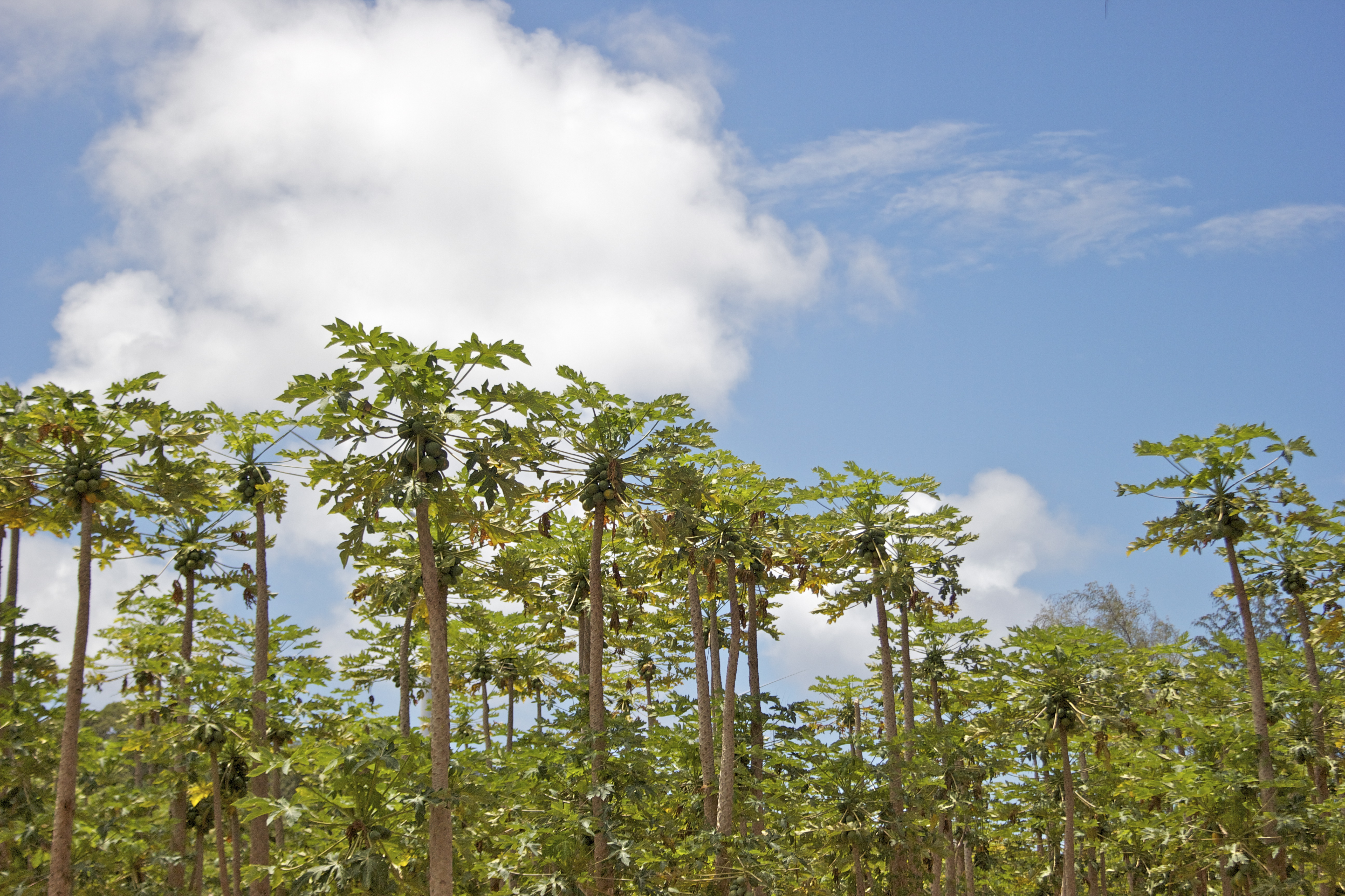 Judah put up umbrellas on the wagon to keep the sun off our shoulders and cupped a hand around his head mic to shield it from the wind. He carted us along behind the tractor, announcing each crop as we rode through eggplant fields and papaya groves and past hand-painted signs that indicated mango, sugar cane, avocado. He told us the farm generates all its own power. When we pulled up to the packing facility, I saw that the roof was covered with solar panels.