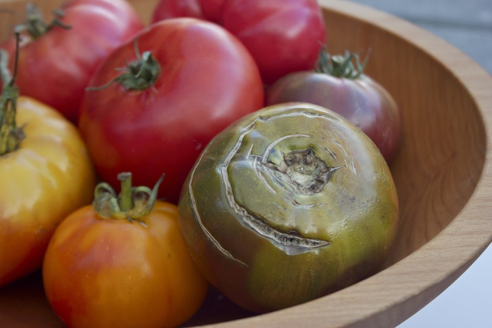 The tomatoes I brought home were grown by Vince at Valley View Farm in Zillah, WA. The farm is primarily a pear orchard and I’m told he’ll be offering pears and tomatoes again on Farmstr in the next few days.