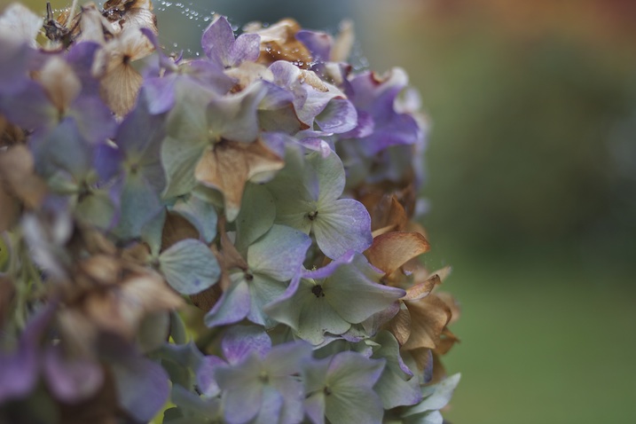 Still, fall hadn’t passed through my skin until yesterday’s session with my camera in the front yard. I hadn’t noticed the structural part of fall. Leaf stems, for instance, and the way droplets hold their shape into the afternoon. Staring through a viewfinder will cure you of that.