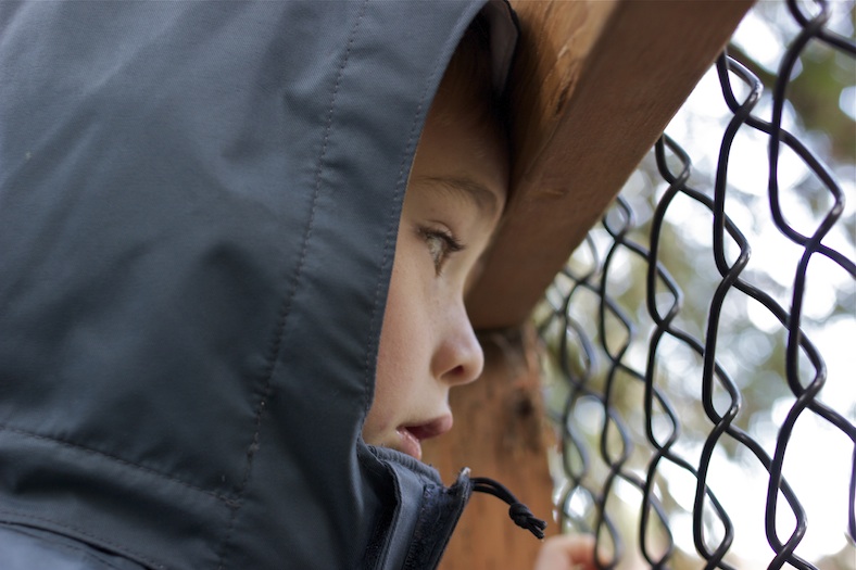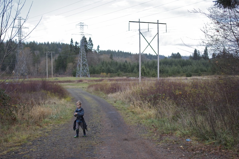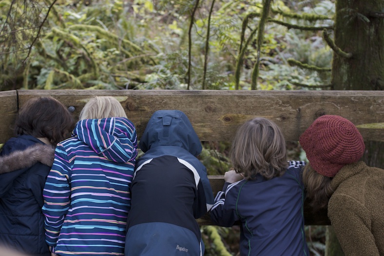 When we came upon a dead salmon, right there on the trail, there were no “Poor thing!”exclamations or kids turning away with queasy stomachs. They gathered so close, I had to hover over them, dodging to keep hooded heads out of the corners of my viewfinder. They observed the creature like good scientists, listening while the docent explained that a bear likely dragged it up from the creek – it would have been too heavy for a raccoon.
