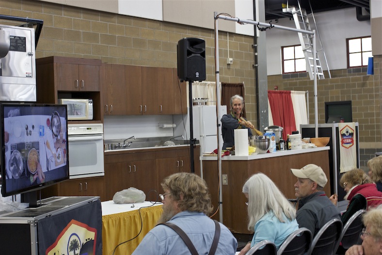 I wasn’t early enough to grab a chair at the pressure cooking demonstration on Sunday morning, when I went to the Mother Earth News Fair*, so I watched from the back as the presenter, Jill Nussinow, finished a dish with vinegar and smoked salt.