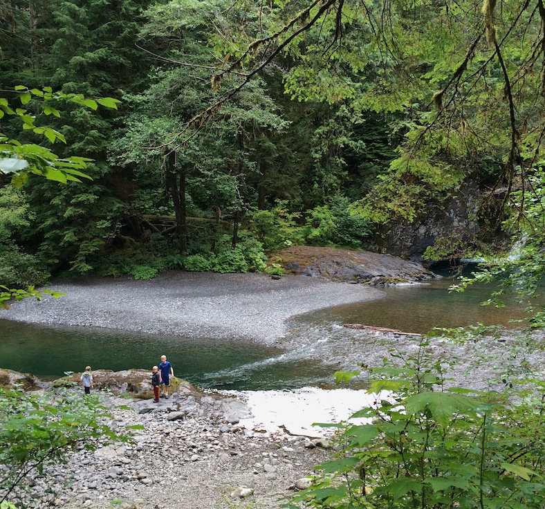 Over Labor Day weekend we went camping with friends and the highlight had to be the second waterfall we hiked in to see. The water rushed down just beyond a curving hunk of rock that jutted up from the pool. As we waded and found good skipping rocks and squinted down at a tiny toad, a group of three dogs and four wetsuited adventurers appeared up at the top of the falls. They started making their way down, the humans working toward a ledge on the front of the rock and the dogs picking their way down the other side, like goats. They had done this before, you could tell. When the dogs made it to the bottom, they started frolicking in the water and soon they had convinced some of the kids in our group to play fetch with them. We watched the people jump and cheered them on. The kids were riveted. We all were. It was the perfect way for some of the more reluctant hikers to shake off the grumps.